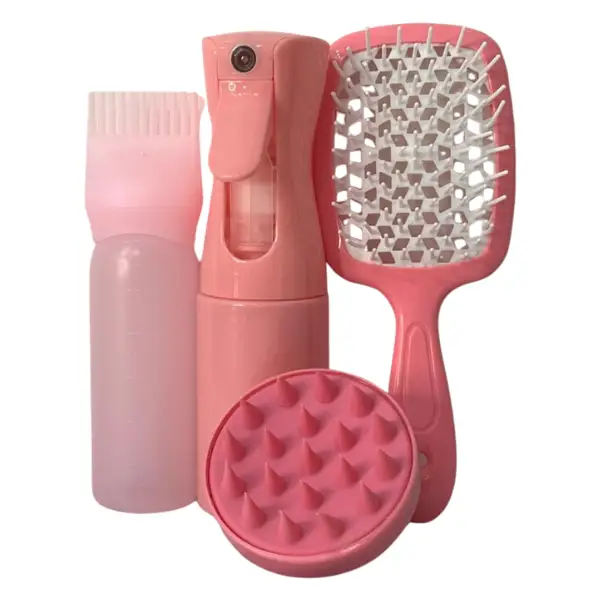 Le Pink Care Hair Ritual – Pack Soin & Massage est un ensemble d’accessoires essentiels pour une routine capillaire efficace, douce et agréable. Pensé pour tous les types de cheveux, il accompagne parfaitement les soins naturels comme les bains d’huile, les lotions hydratantes et les massages du cuir chevelu.